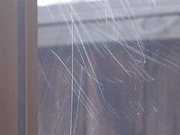 When the window washer cleans the glass using a scraper, the pieces of fabricating debris become disloged, and are dragged across the glass. The result is glass dragging on glass, which will scratch the surface of the window.
